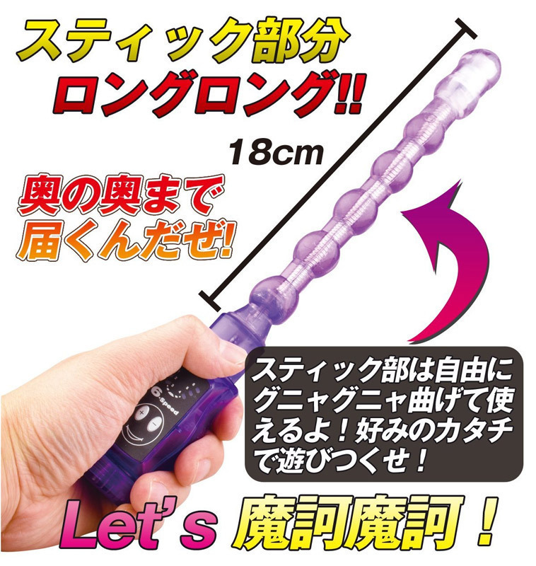 アナルの奥までブルブル刺激!芯がクネクネ曲がっちゃう6連ボールのスティックローター。