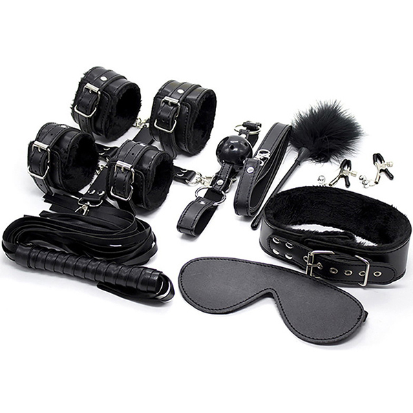 パッケージ:38.0×27.0×6.0cm セット内容:縄、アイマスク、口枷、手枷、足枷、首輪、ムチ、クリップ、ティーザー、連結用十字ベルト