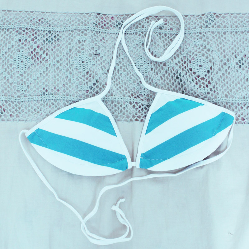パステルカラーがラブリー!ホルターネックタイプのしましま三角ビキニブラ。